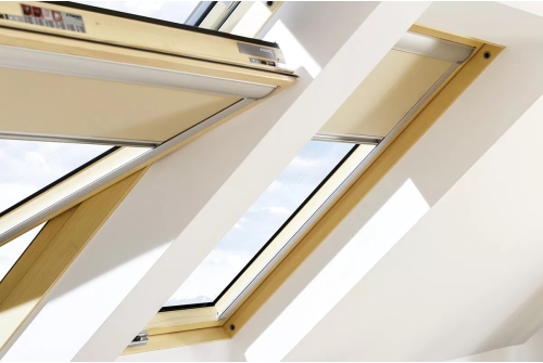 Рулонные шторы для мансардных окон FAKRO ARF даже в самый солнечный день позволят создать в комнате полное затемнение. Боковые направляющие, специальное уплотнение в нижней части алюминиевой планки и слой материала "термо-стоп", которым покрыта штора, препятствуют проникновению света и ограничивают доступ тепла в летний период. Шторы на деревянные и пластиковые мансардные окна изготавливаются из современного материала, который не теряет своих физических свойств и эстетических качеств даже при интенсивном воздействии ультрафиолетовых лучей. Боковые направляющие из алюминия позволяют зафиксировать штору в нужном положении.