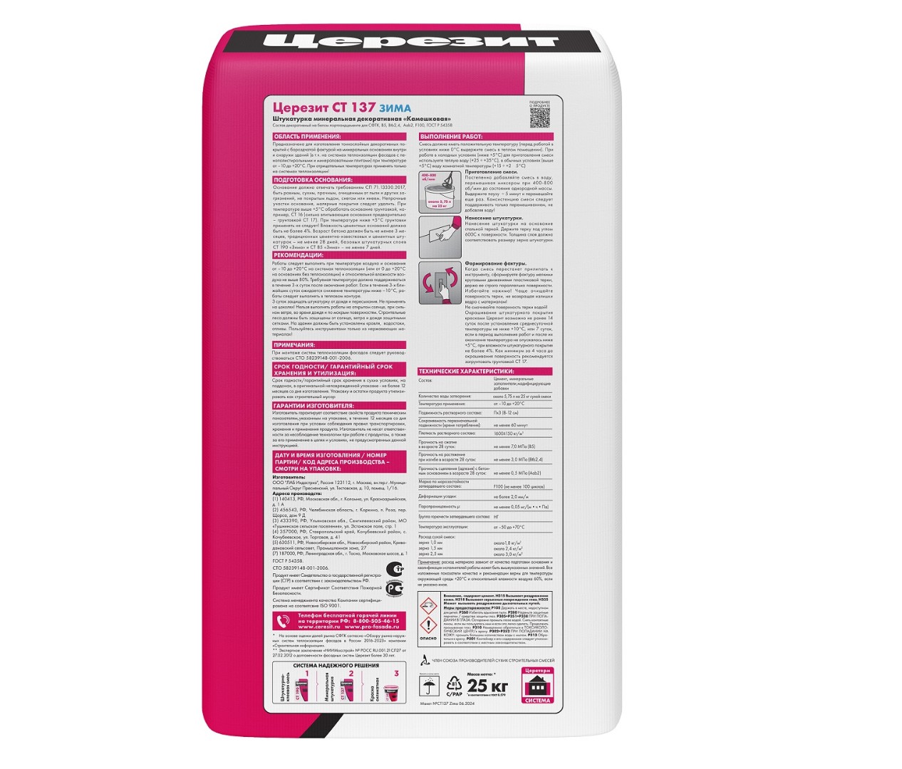 Описание товара: "Штукатурка Ceresit СТ 137 1,0 мм "камешковая" под окраску Зима (25 кг)"