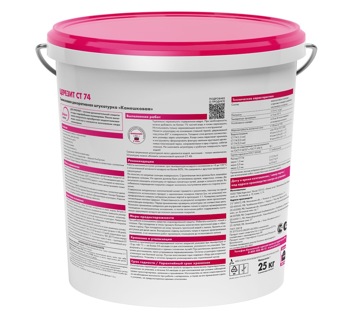 Описание товара: "Штукатурка Ceresit силиконовая СТ 74 1,5 мм "камешковая", база (25 кг)"
